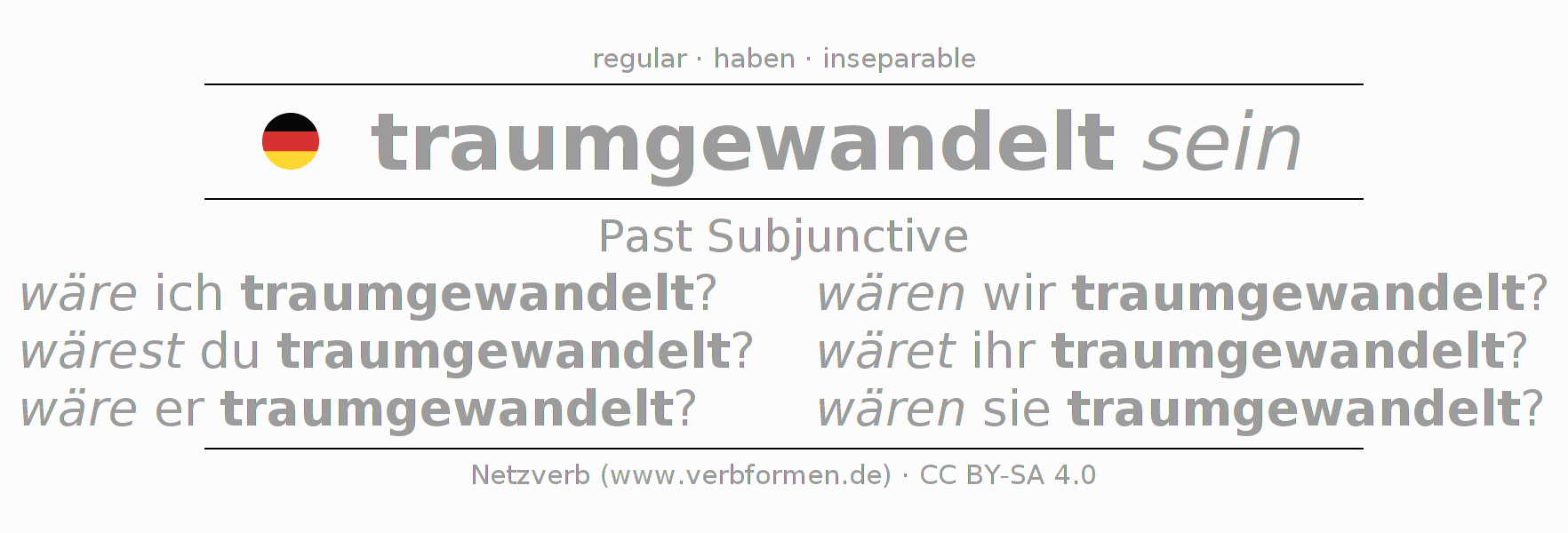 The verb traumwandeln (hat) fully conjugated in all persons and numbers in the Subjunctive Imperfect
