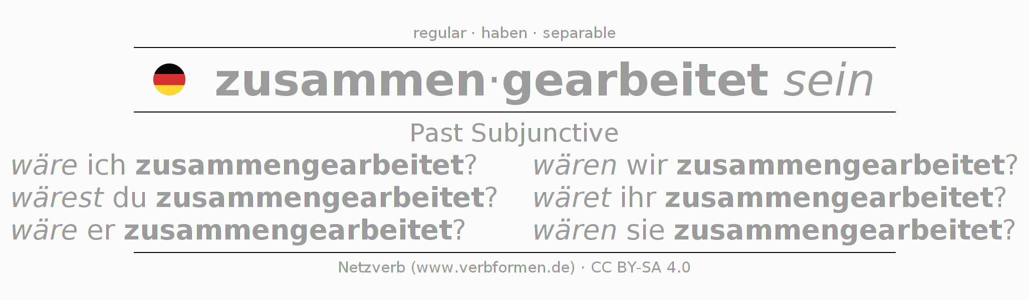 The verb zusammenarbeiten fully conjugated in all persons and numbers in the Subjunctive Imperfect