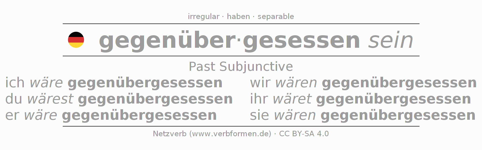 The verb gegenübersitzen (hat) fully conjugated in all persons and numbers in the Subjunctive Imperfect