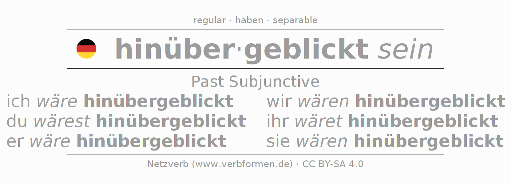 The verb hinüberblicken fully conjugated in all persons and numbers in the Subjunctive Imperfect