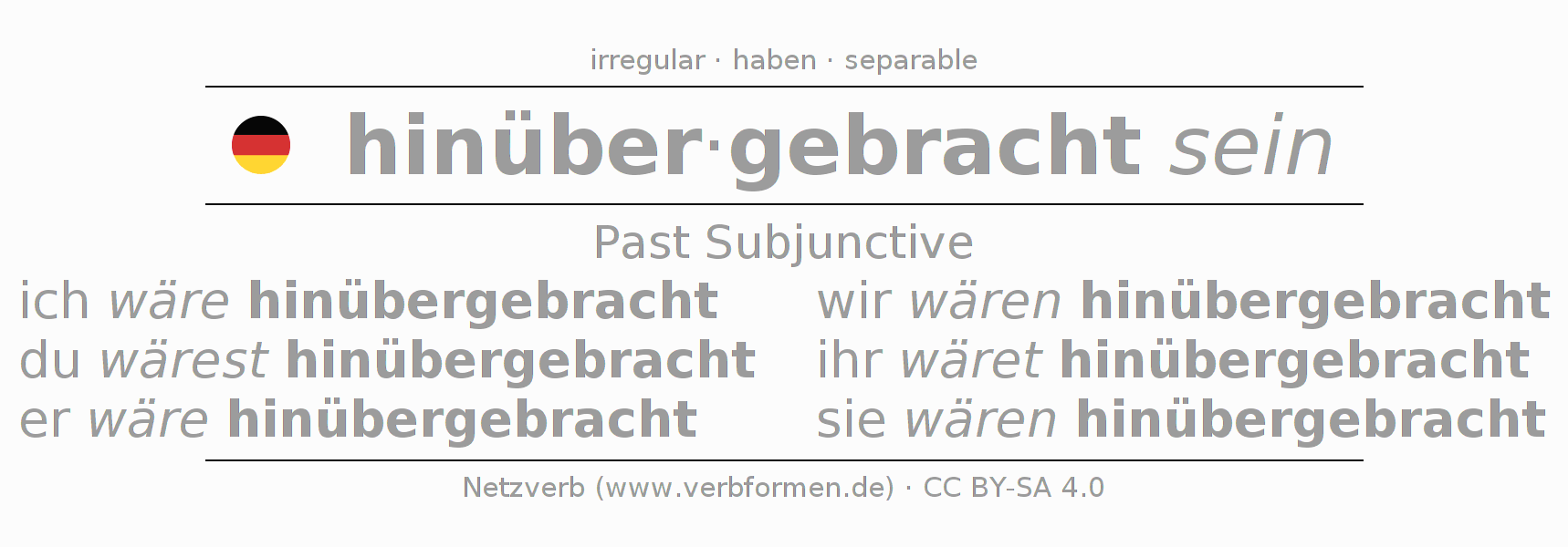 The verb hinüberbringen fully conjugated in all persons and numbers in the Subjunctive Imperfect