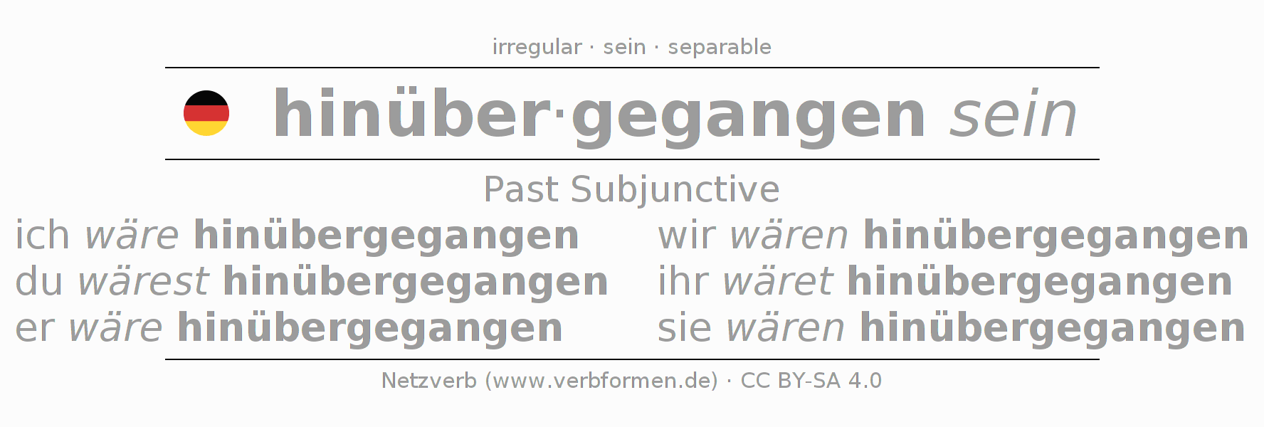The verb hinübergehen fully conjugated in all persons and numbers in the Subjunctive Imperfect