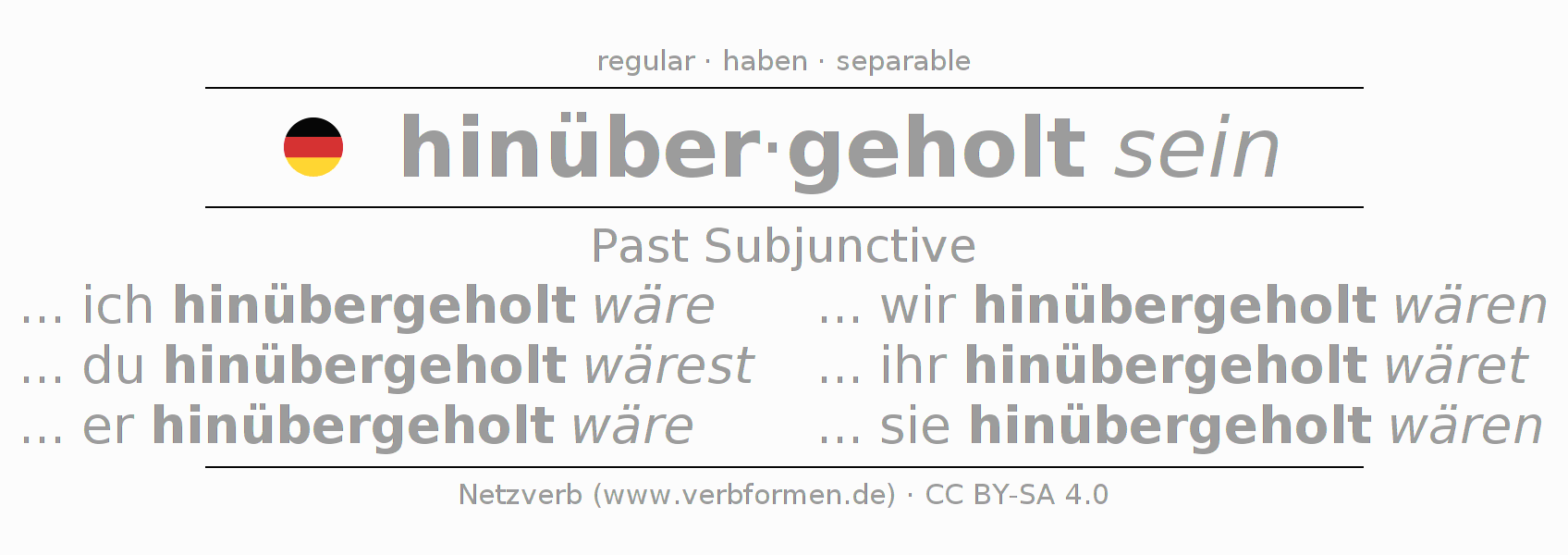 The verb hinüberholen fully conjugated in all persons and numbers in the Subjunctive Imperfect
