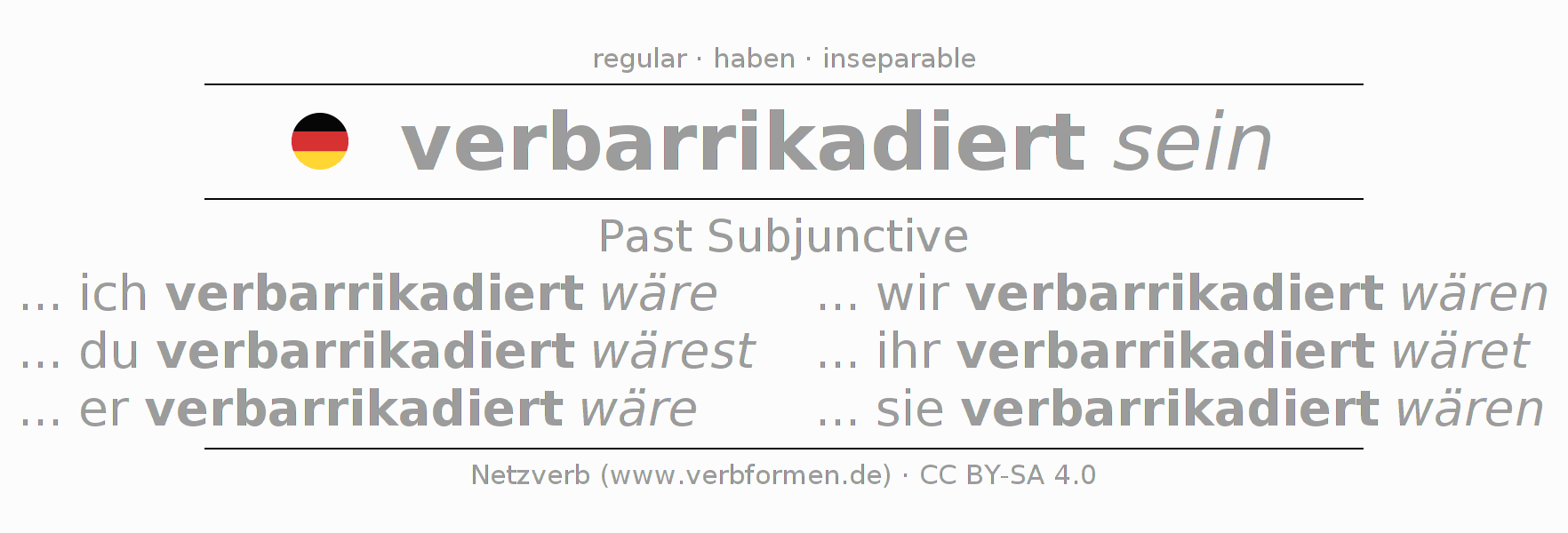 The verb verbarrikadieren fully conjugated in all persons and numbers in the Subjunctive Imperfect