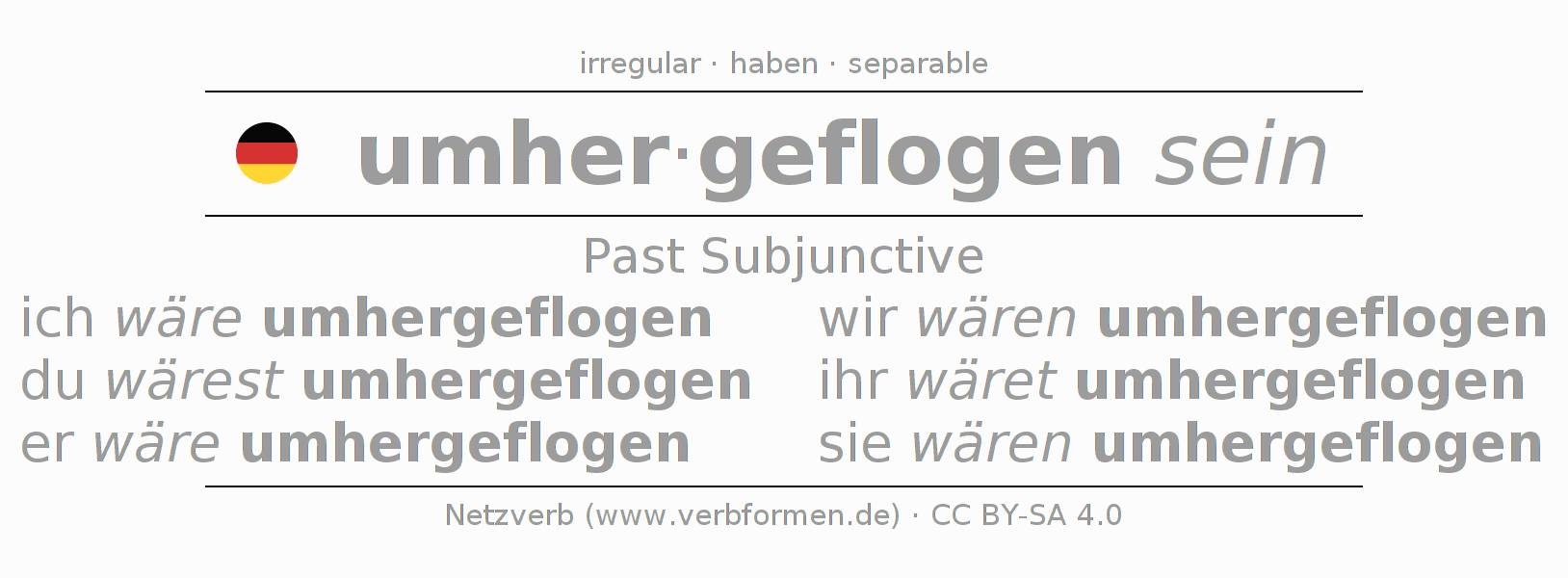 The verb umherfliegen (hat) fully conjugated in all persons and numbers in the Subjunctive Imperfect