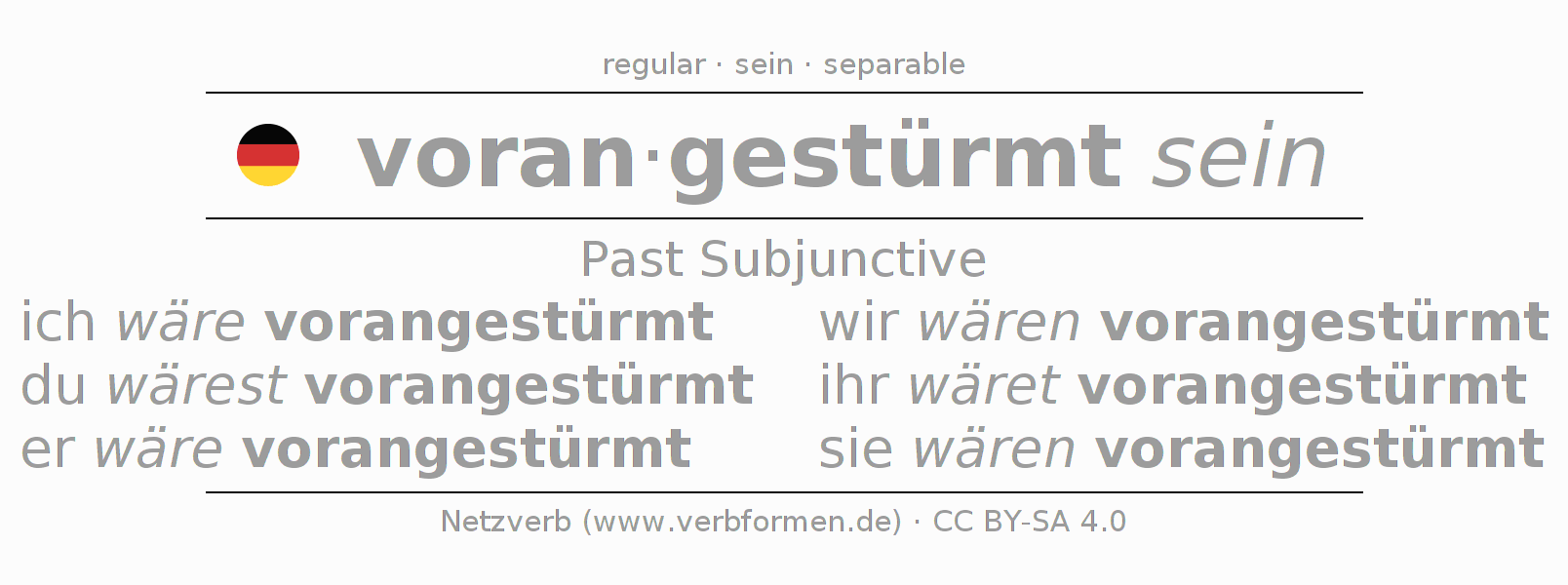 The verb voranstürmen fully conjugated in all persons and numbers in the Subjunctive Imperfect