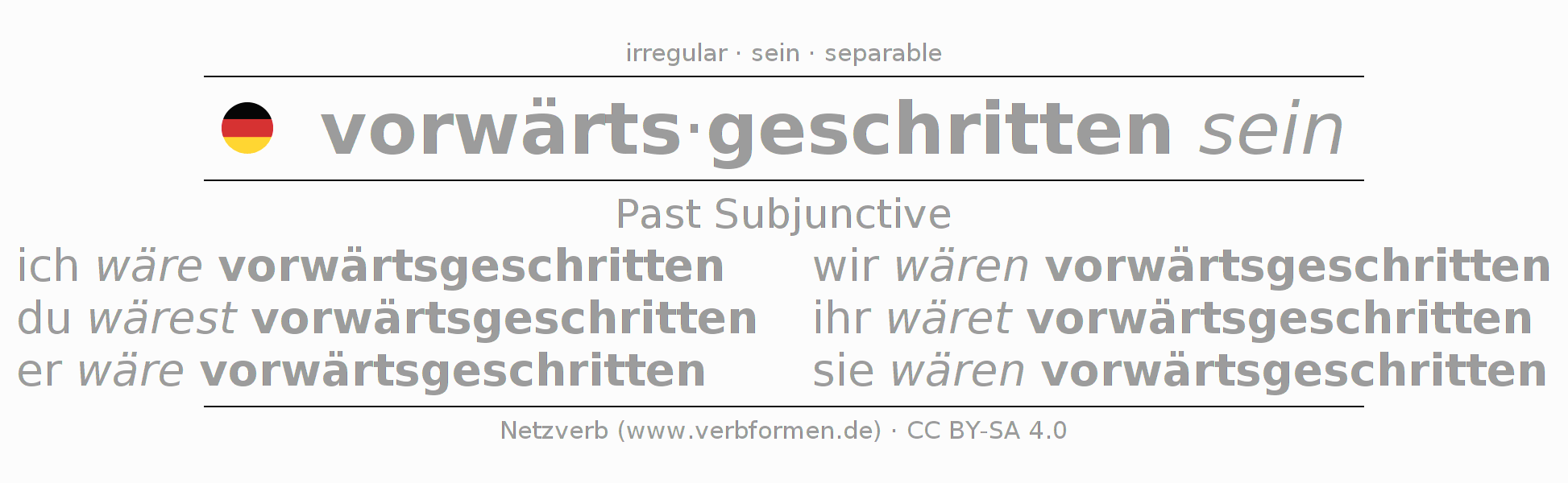 The verb vorwärtsschreiten fully conjugated in all persons and numbers in the Subjunctive Imperfect