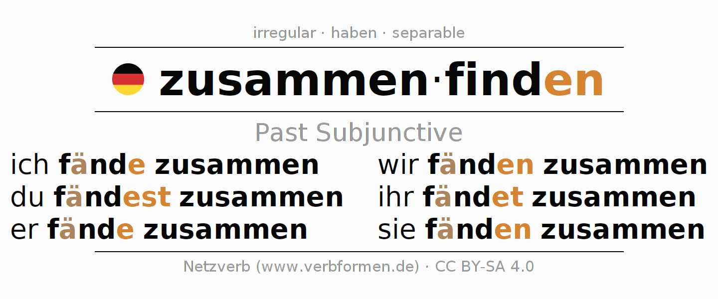 The verb zusammenfinden fully conjugated in all persons and numbers in the Subjunctive Imperfect