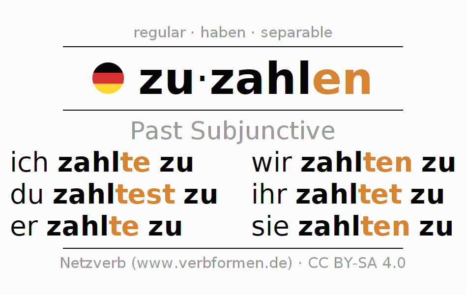 The verb zuzahlen fully conjugated in all persons and numbers in the Subjunctive Imperfect