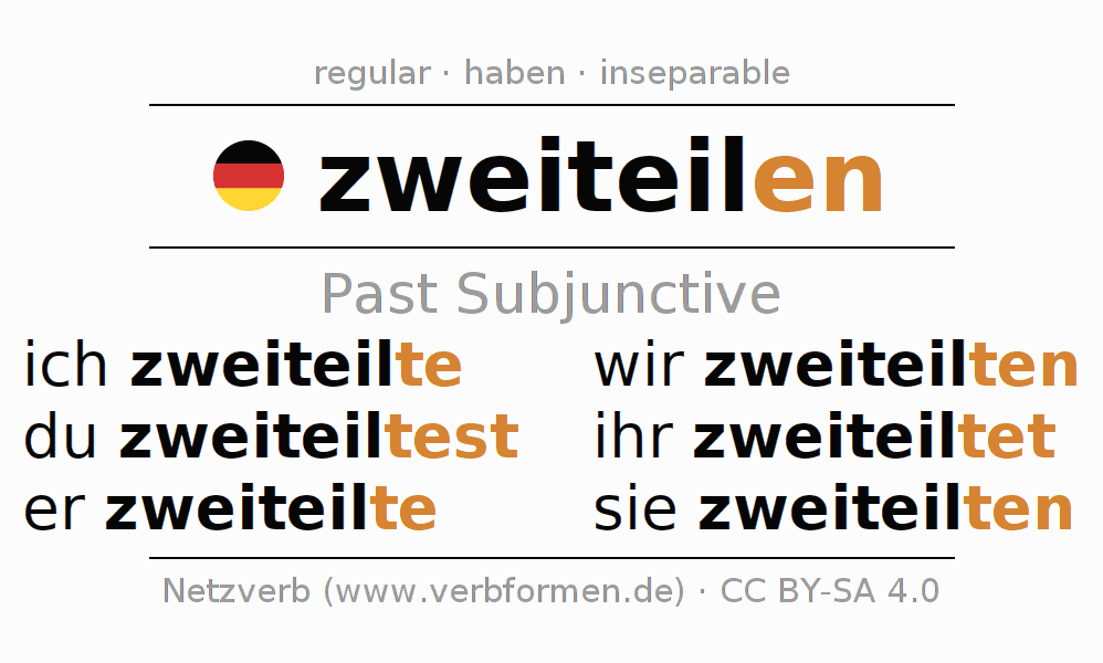 The verb zweiteilen fully conjugated in all persons and numbers in the Subjunctive Imperfect