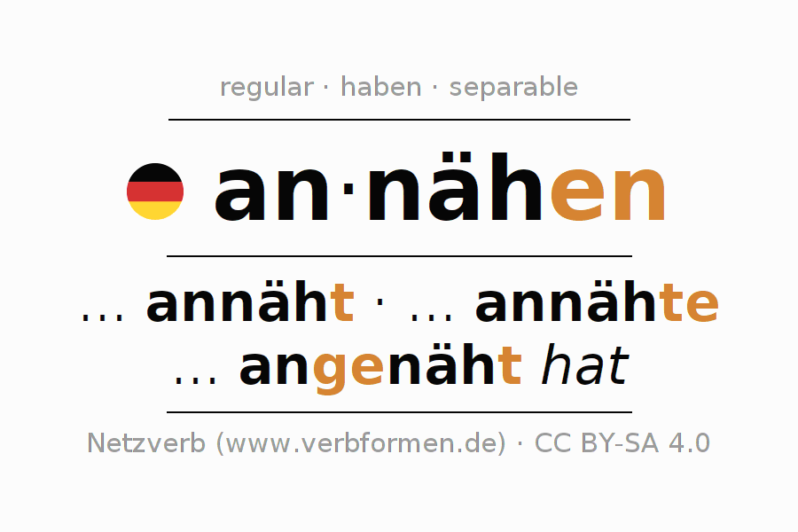 | wir | ... annäh(e)n | ... annähten | ... annäh(e)n | ... annähten | näh(e)n an |