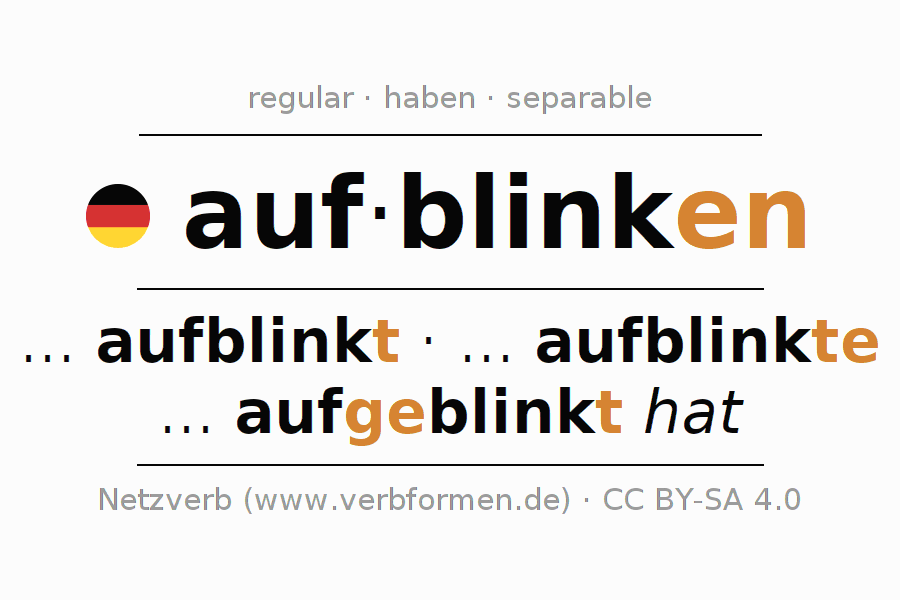 - Future: ... ich aufblinken werde, ... du aufblinken wirst, ... er aufblinken wird, ... wir aufblinken werden, ... ihr aufblinken werdet, ... sie aufblinken werden