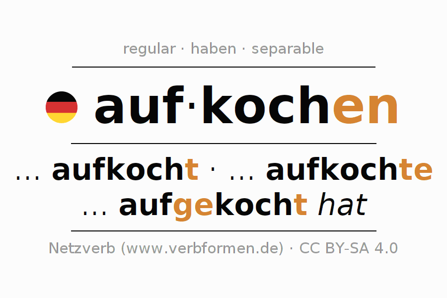 ... aufkocht · ... aufkochte · ... aufgekocht hat