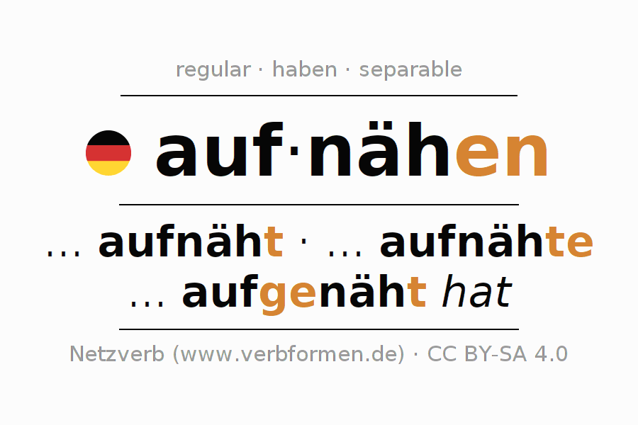... aufnäht · ... aufnähte · ... aufgenäht hat
