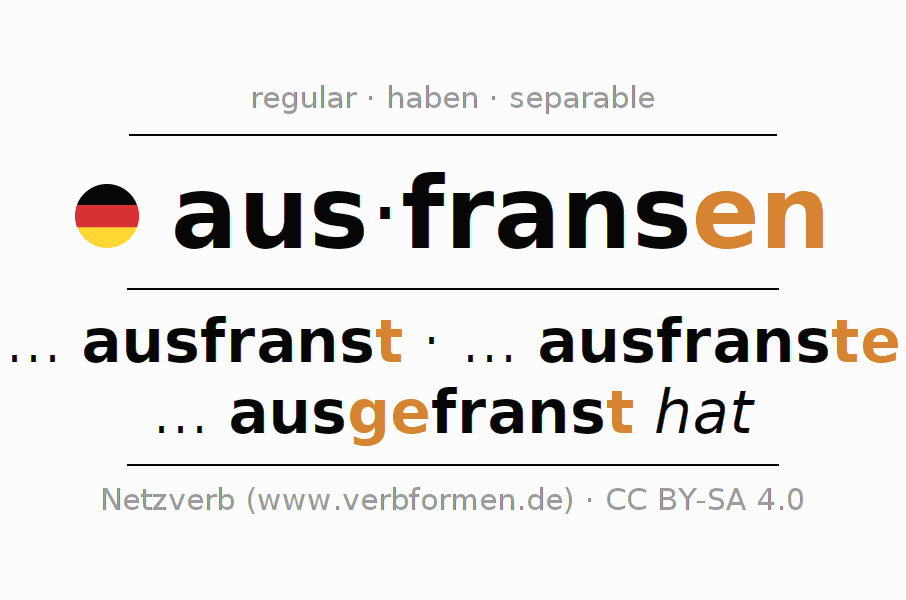 - Present: frans(e) (du) aus, fransen wir aus, franst (ihr) aus, fransen Sie aus