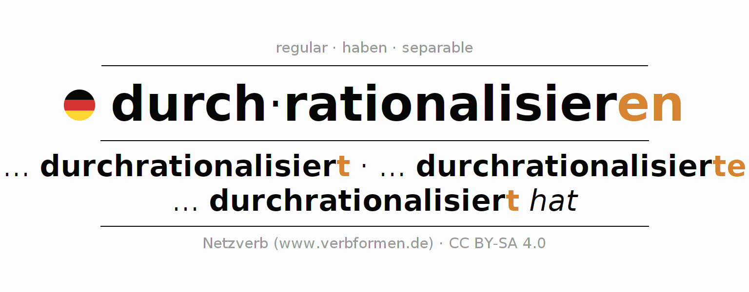 - Present: rationalisier(e) (du) durch, rationalisieren wir durch, rationalisiert (ihr) durch, rationalisieren Sie durch