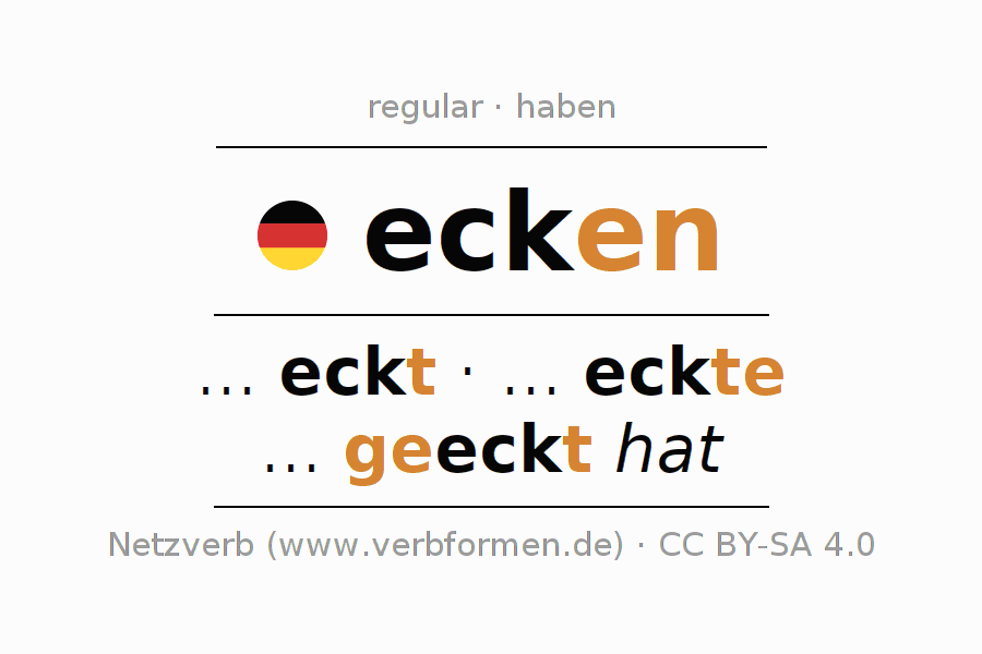- Present: ... ich eck(e), ... du eckst, ... er eckt, ... wir ecken, ... ihr eckt, ... sie ecken