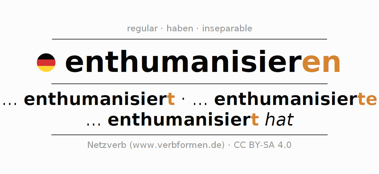 - Infinitive II: enthumanisiert haben, enthumanisiert zu haben