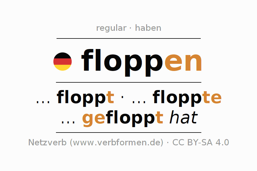 - Present: flopp(e) (du), floppen wir, floppt (ihr), floppen Sie