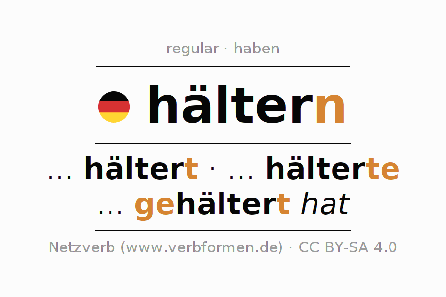 - Future: ... ich hältern werde, ... du hältern wirst, ... er hältern wird, ... wir hältern werden, ... ihr hältern werdet, ... sie hältern werden