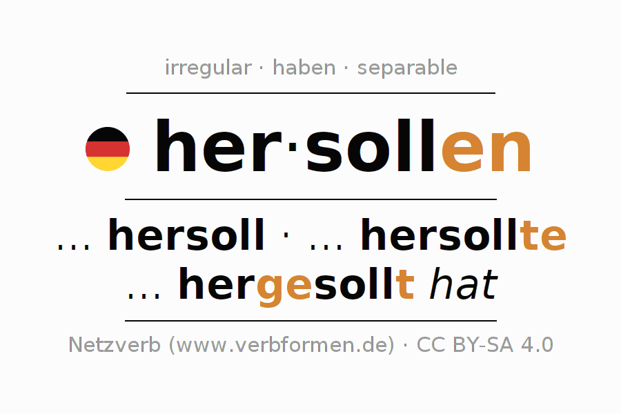 - Future: ... ich hersollen werde, ... du hersollen wirst, ... er hersollen wird, ... wir hersollen werden, ... ihr hersollen werdet, ... sie hersollen werden