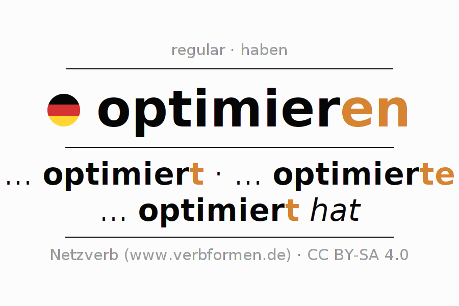 - Present: optimier(e) (du), optimieren wir, optimiert (ihr), optimieren Sie