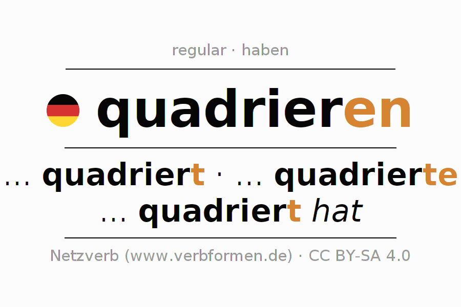 - Present: quadrier(e) (du), quadrieren wir, quadriert (ihr), quadrieren Sie