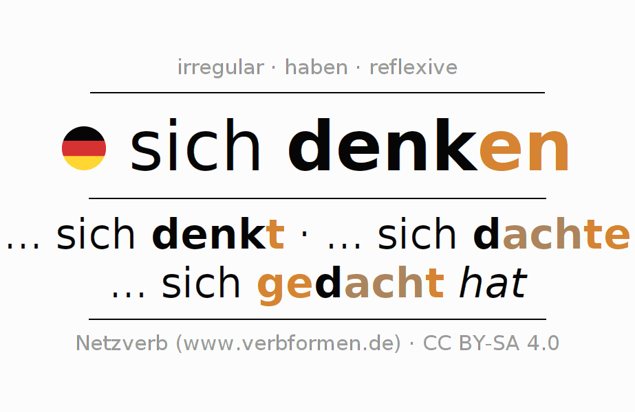 - Present: denk(e) (du) dir/dich, denken wir uns, denkt (ihr) euch, denken Sie sich