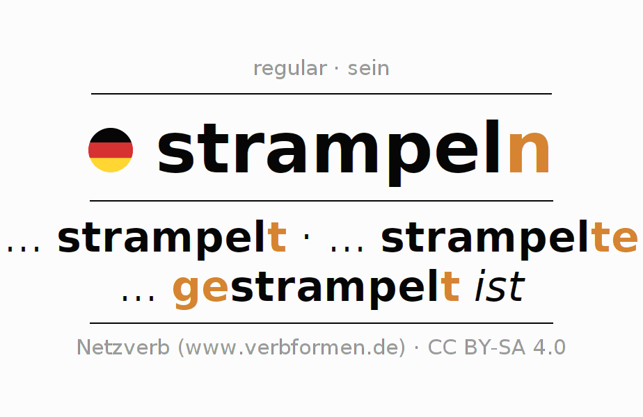 - Present: stramp(e)l(e) (du), strampeln wir, strampelt (ihr), strampeln Sie