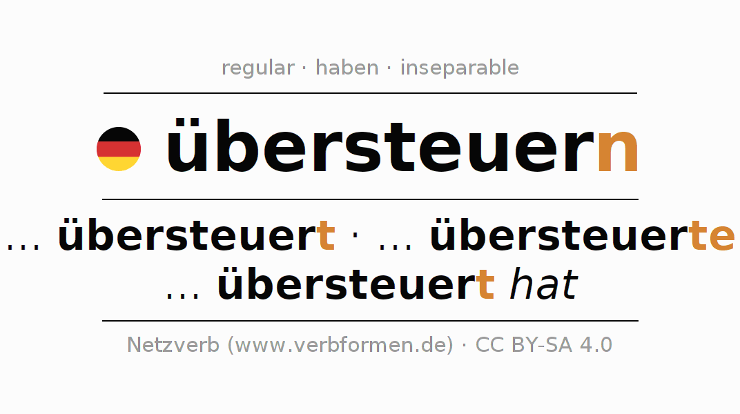 The conjugation in the subjunctive I and II and in the present tense, past tense, perfect, pluperfect and future tense for the verb übersteuern