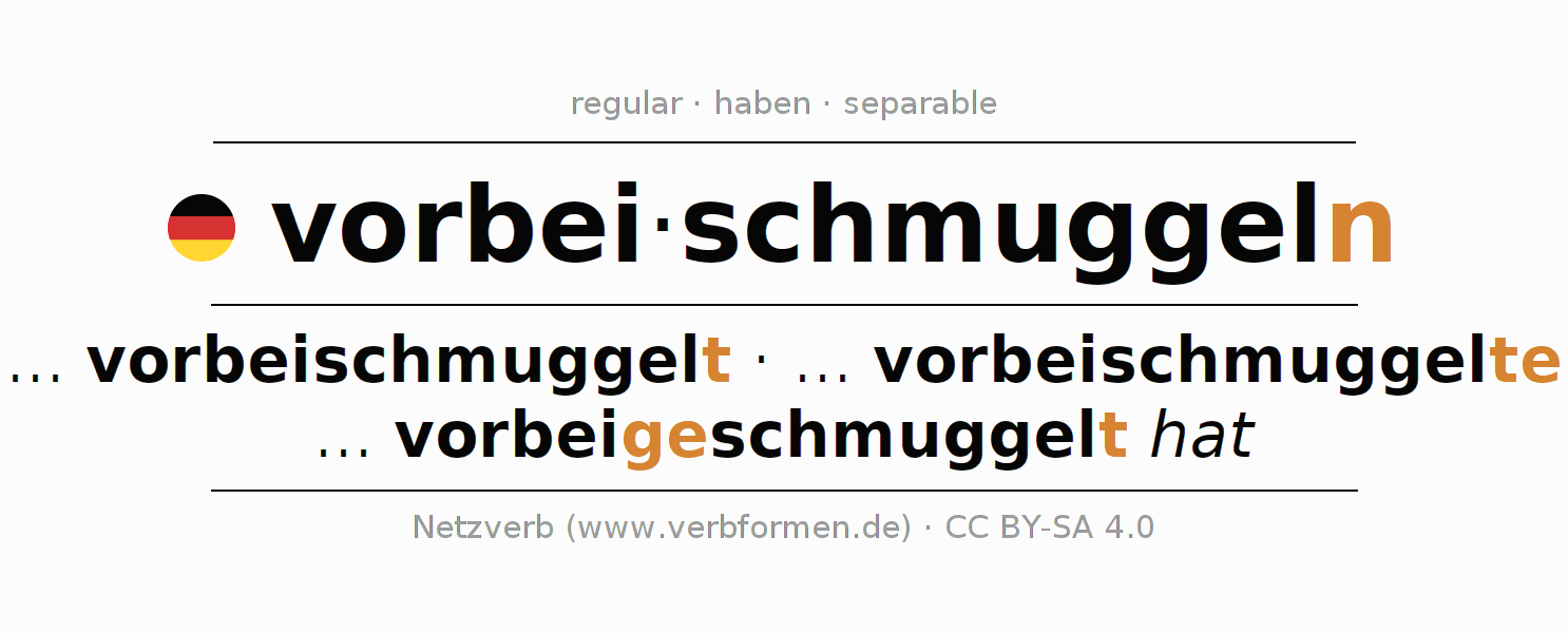 The forms of conjugation in the imperative Active present for the verb vorbeischmuggeln