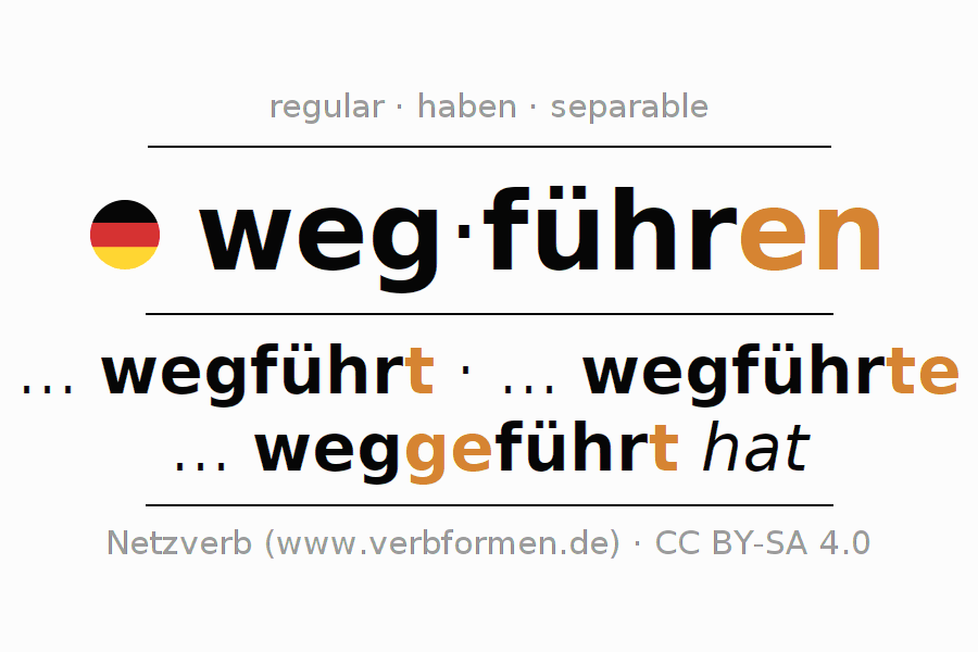 - Present: führ(e) (du) weg, führen wir weg, führt (ihr) weg, führen Sie weg