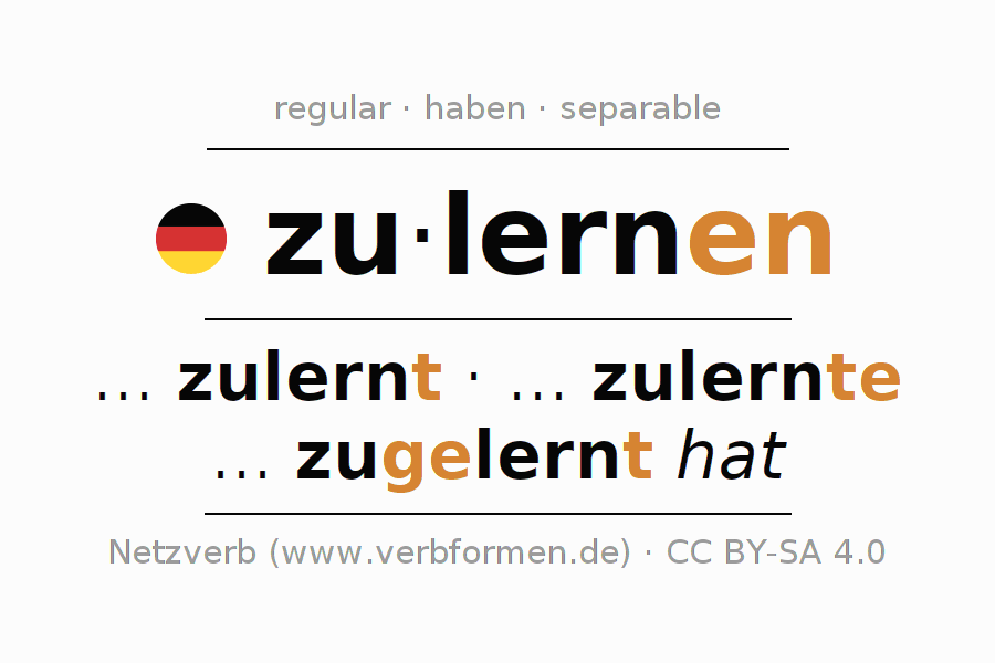 - Present: lern(e) (du) zu, lernen wir zu, lernt (ihr) zu, lernen Sie zu