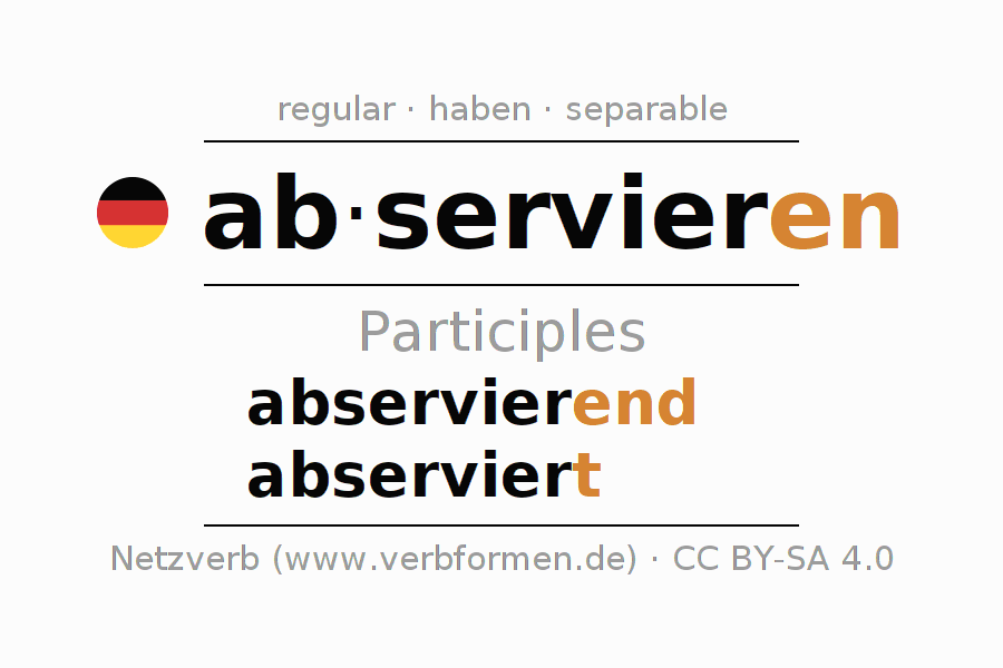 The verb abservieren fully conjugated in all persons and numbers in the Participle Present Perfect