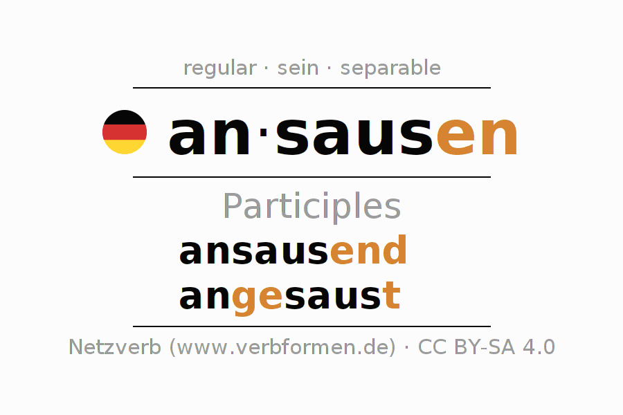 The verb ansausen fully conjugated in all persons and numbers in the Participle Present Perfect