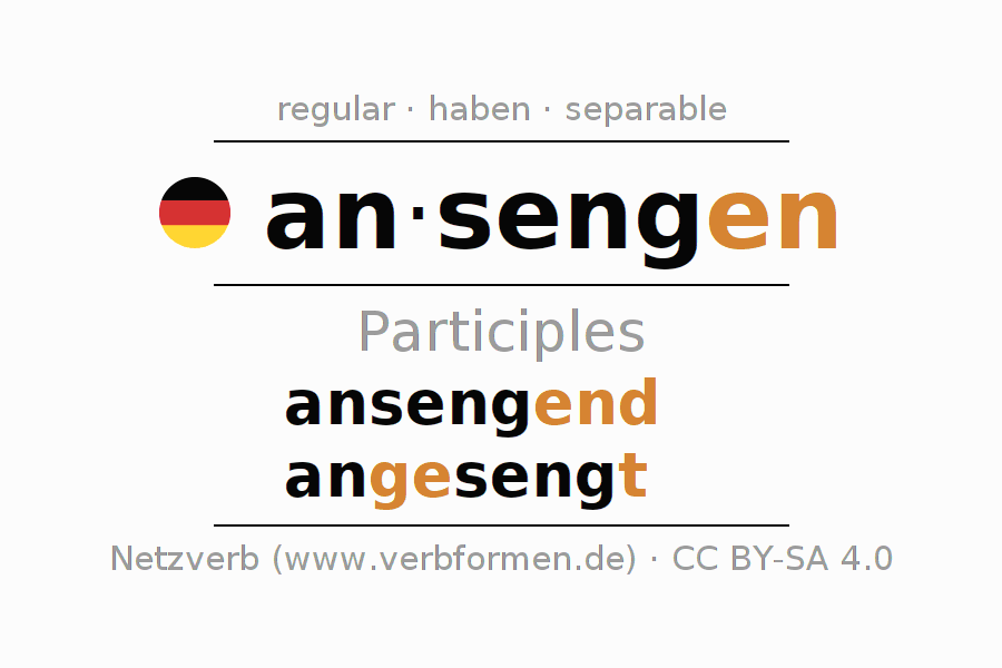 The participles of ansengen (scorch, singe) are: ansengend, angesengt.