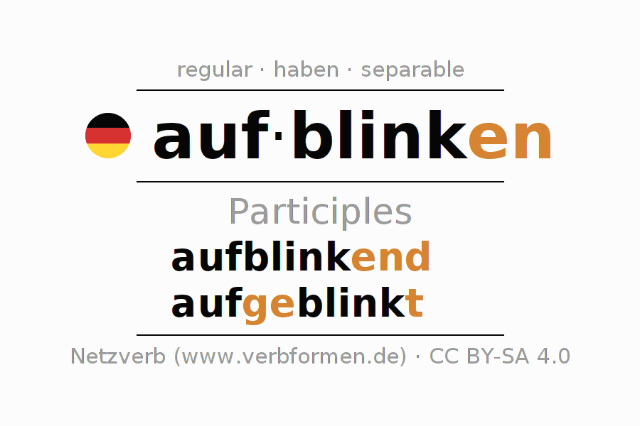 The verb aufblinken fully conjugated in all persons and numbers in the Participle Present Perfect