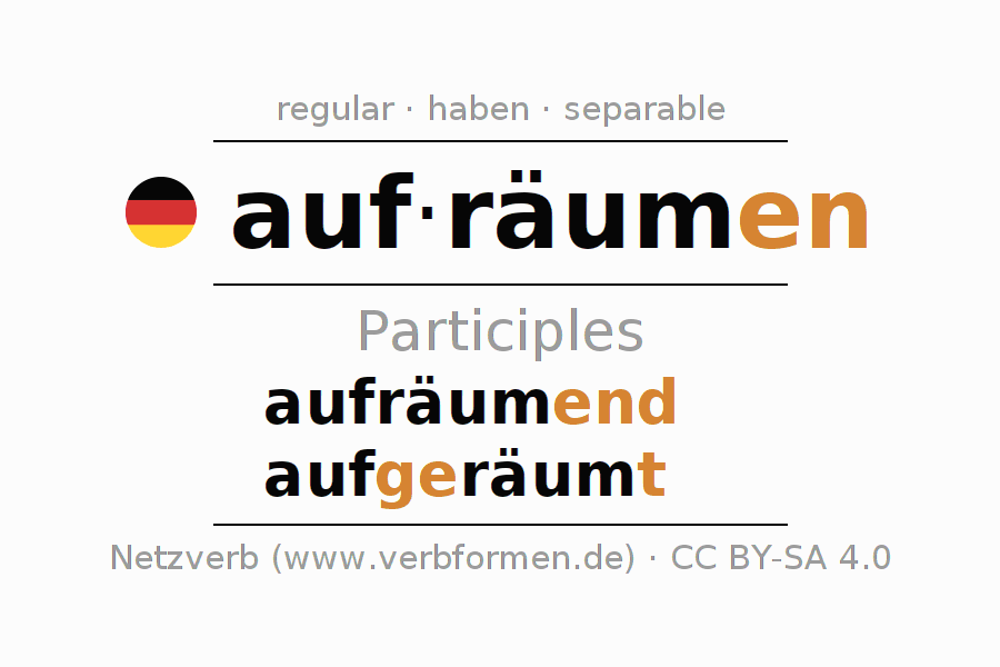 The verb aufräumen fully conjugated in all persons and numbers in the Participle Present Perfect