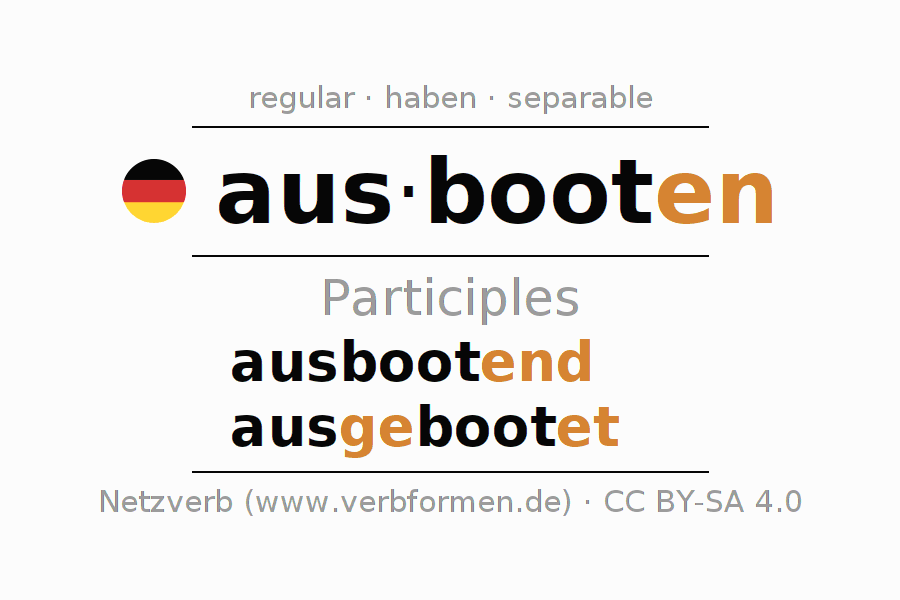 The verb ausbooten fully conjugated in all persons and numbers in the Participle Present Perfect