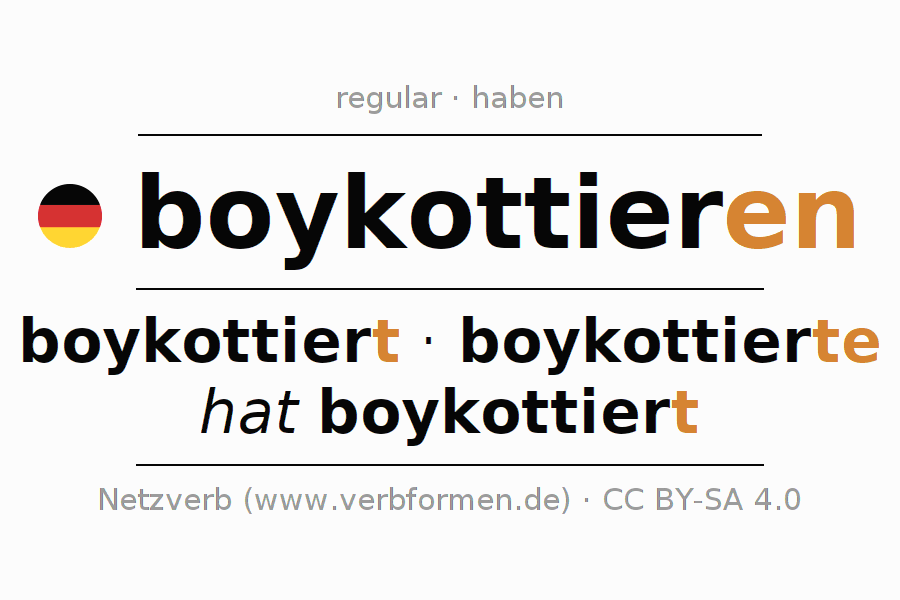 The verb boykottieren fully conjugated in all persons and numbers in the Participle Present Perfect