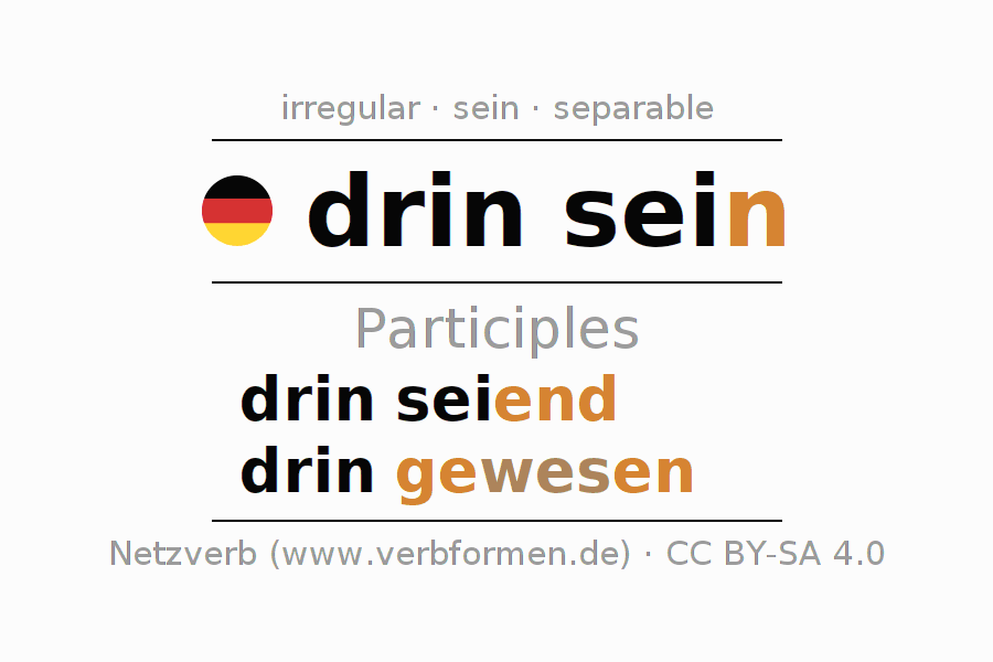 The verb drinsein fully conjugated in all persons and numbers in the Participle Present Perfect