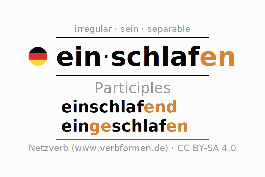 The participles of einschlafen (fall asleep, go to sleep) are: einschlafend, eingeschlafen.