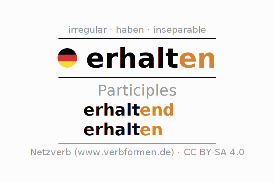 The participles of erhalten (maintain, get) are: erhaltend, erhalten.