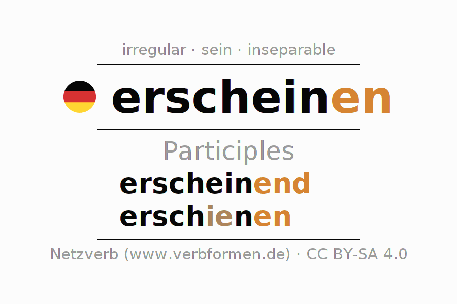 The participles of erscheinen (appear, be published) are: erscheinend, erschienen.