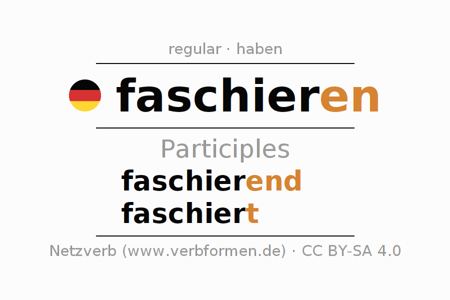The verb faschieren fully conjugated in all persons and numbers in the Participle Present Perfect
