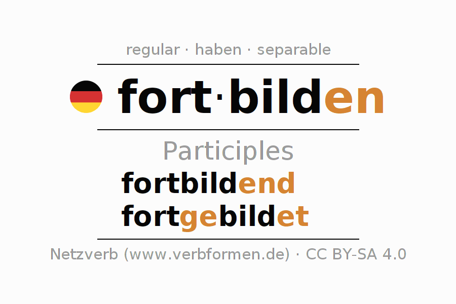 The verb fortbilden fully conjugated in all persons and numbers in the Participle Present Perfect