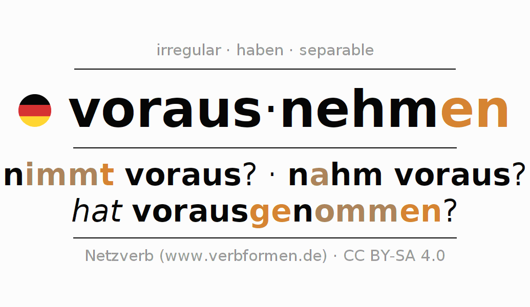 The verb vorausnehmen fully conjugated in all persons and numbers in the Participle Present Perfect