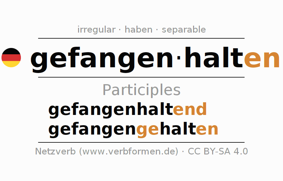 The verb gefangenhalten fully conjugated in all persons and numbers in the Participle Present Perfect