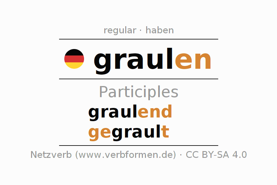 The verb graulen fully conjugated in all persons and numbers in the Participle Present Perfect