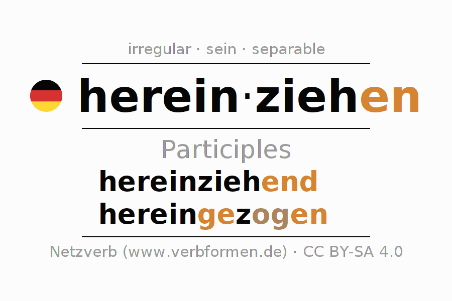 The participles of hereinziehen (bring in, pull in) are: hereinziehend, hereingezogen.